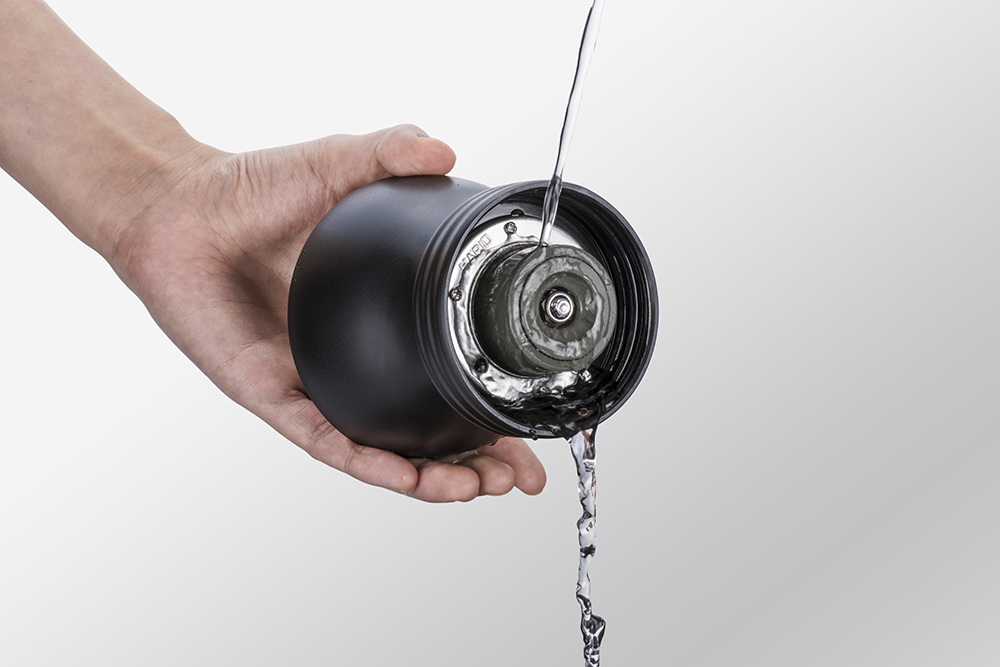 O seu tamanho compacto torna-o perfeito para viagens ou uso doméstico. Este moinho tem a capacidade de fazer uma variedade completa de tamanhos de moagem, e pode aguentar até 100g de café.
